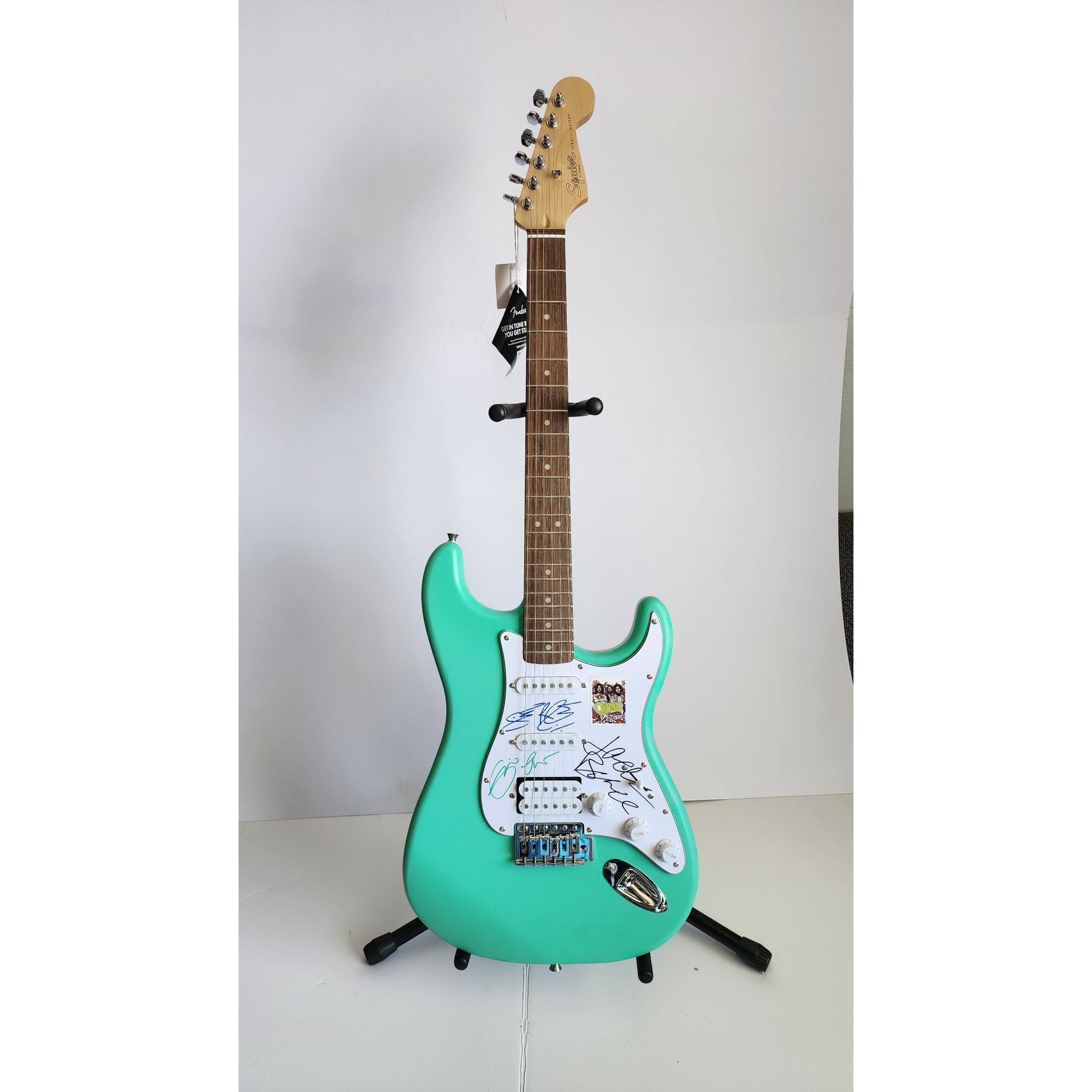 I am including a few cherished framed guitars here from collection and also a couple of my framed guitar pickguards. Originally 40 years ago it was a thrill to get artists to sign guitars however, change is always around the corner and the internet era fell upon us , Princess Diana's death was blamed on Paparazzi chasing her the autograph world also was evolving and in order to be more efficient and get more signatures without problems issues and what I mean by that is being able to attend events be in hotel lobbies and even not offend particular artists who felt as though signing guitars was taboo THE PICKGUARD small and simple but yet large enough to get multiple signatures on became an excellent alternative to getting guitars always signed. You can only carry or keep with you a few guitars where the part of the guitar pickguard which goes on the guitar you can keep 100s of those in a backpack!!