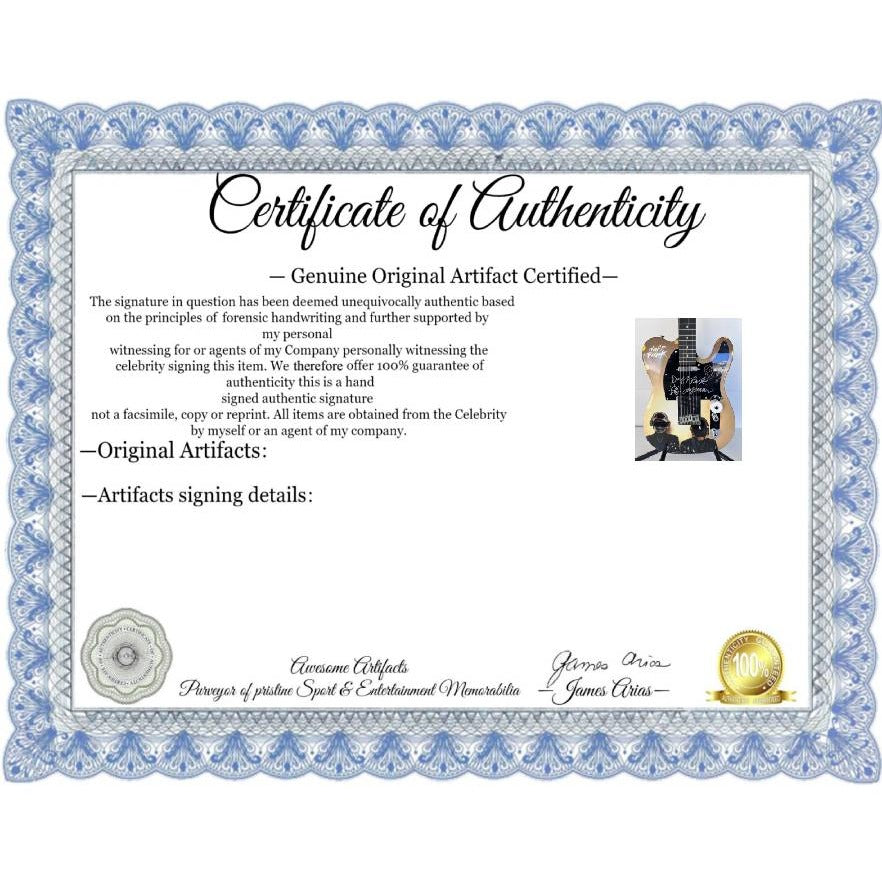 I am including a few cherished framed guitars here from collection and also a couple of my framed guitar pickguards. Originally 40 years ago it was a thrill to get artists to sign guitars however, change is always around the corner and the internet era fell upon us , Princess Diana's death was blamed on Paparazzi chasing her the autograph world also was evolving and in order to be more efficient and get more signatures without problems issues and what I mean by that is being able to attend events be in hotel lobbies and even not offend particular artists who felt as though signing guitars was taboo THE PICKGUARD small and simple but yet large enough to get multiple signatures on became an excellent alternative to getting guitars always signed. You can only carry or keep with you a few guitars where the part of the guitar pickguard which goes on the guitar you can keep 100s of those in a backpack!!