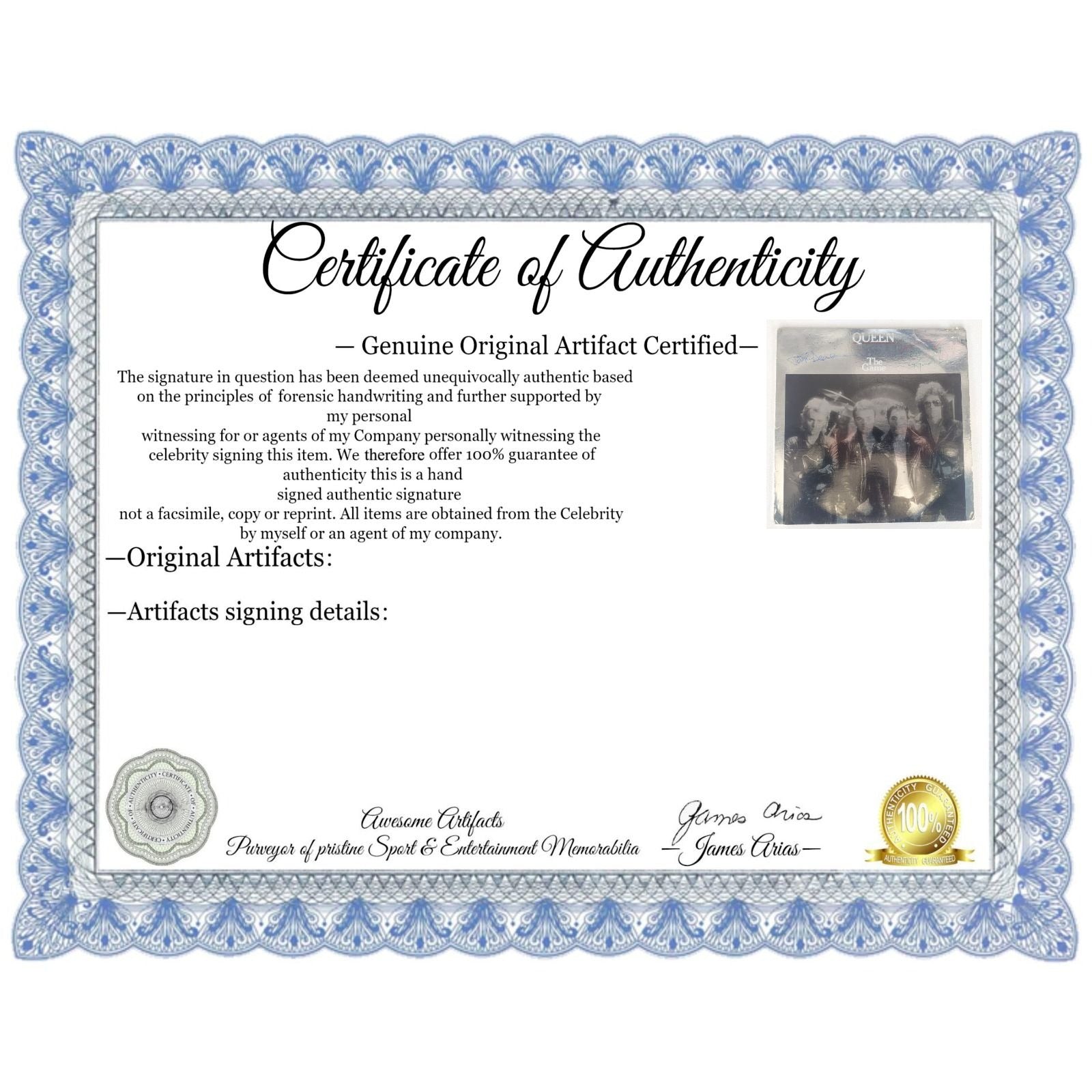 Freddie Mercury Brian May John Deacon Roger Taylor Queen "The Game" original LP signed with proof