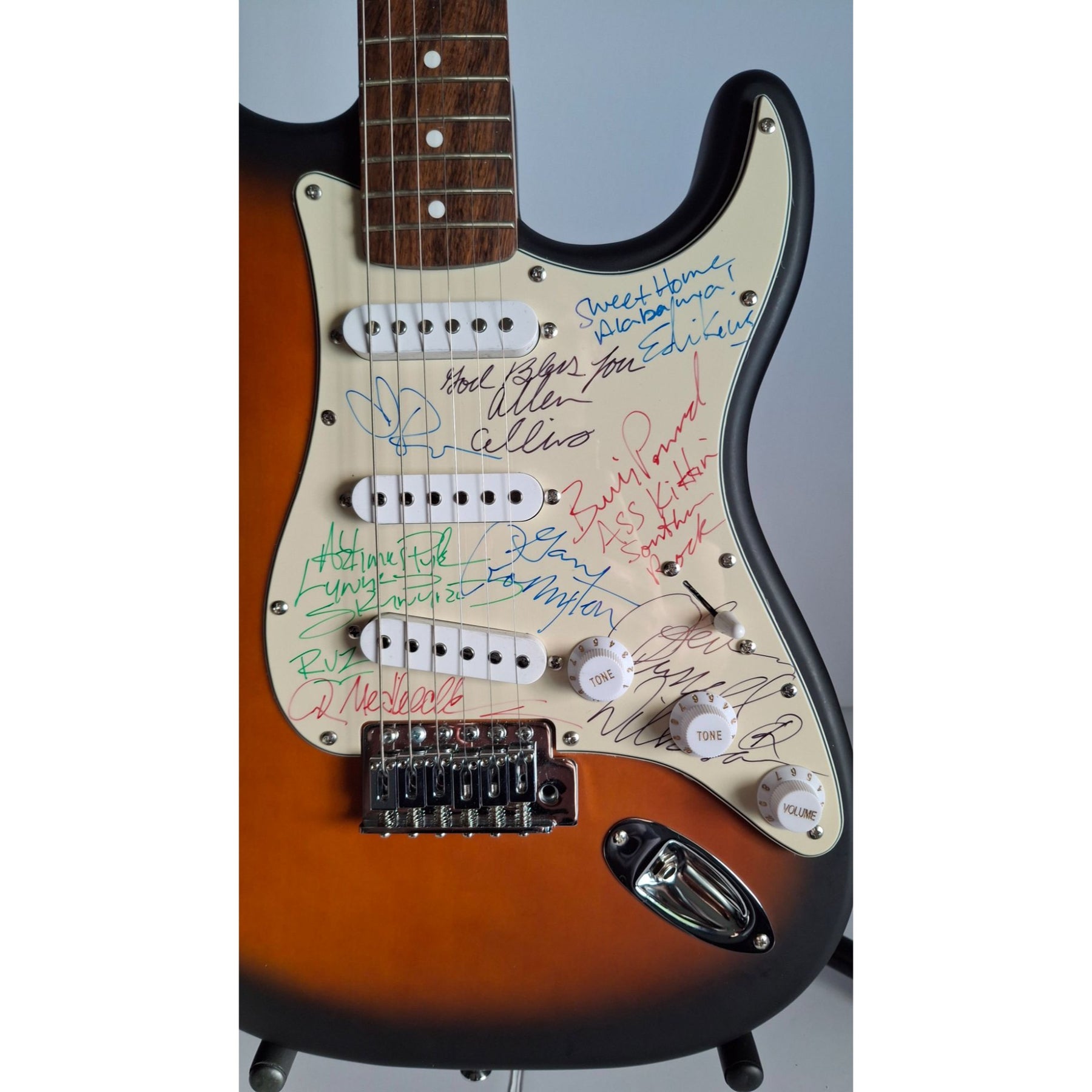 Lynyrd Skynyrd, Gary Rossington, Johnny Van Zant, Rickey Medlocke, Billy Powell, Ed King, Leon Wilkeson, Artimus Pyle & Alan Collins, Fender Stratocaster electric guitar signed with proof $5995