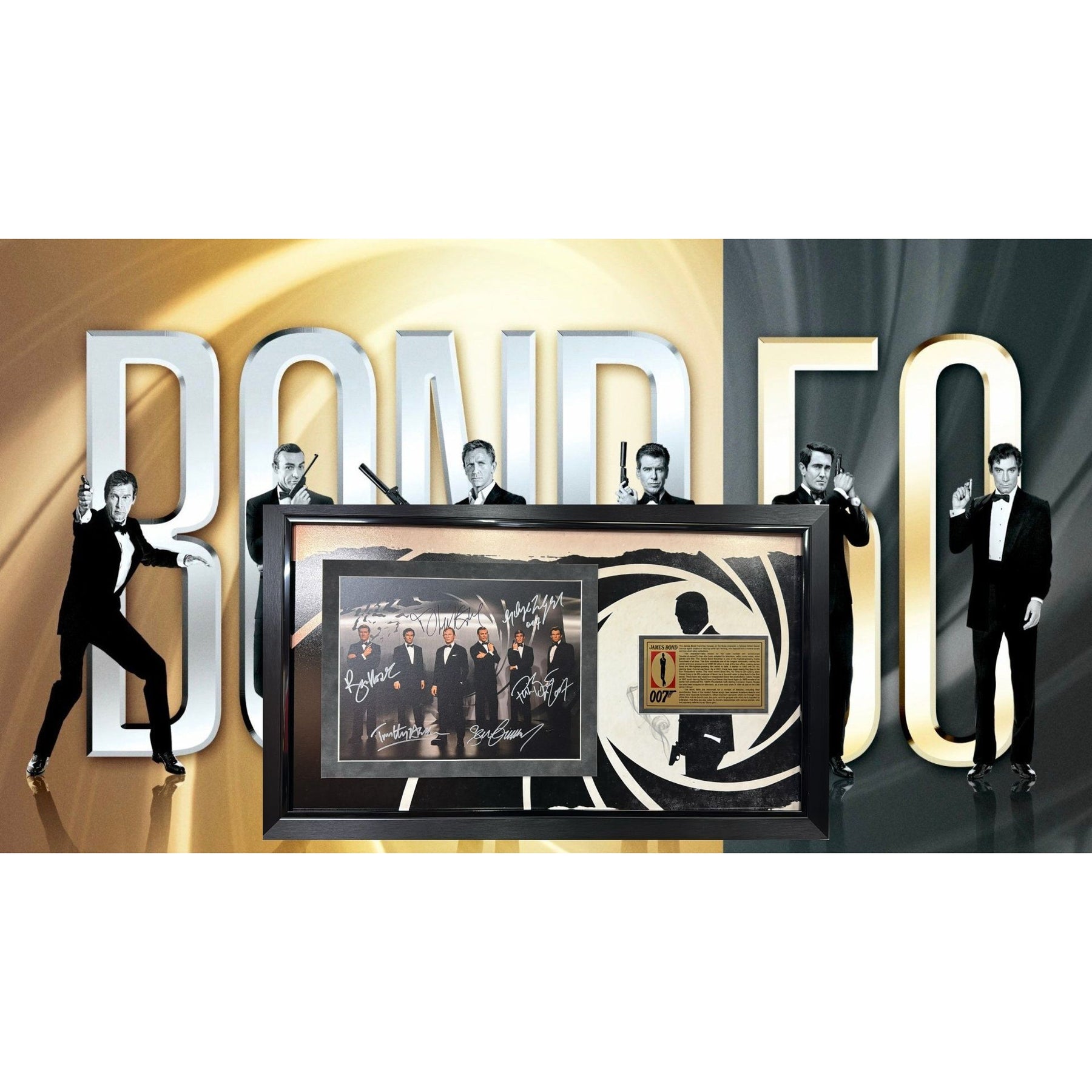 James Bond, 007, 11x14, photo, Sean Connery, Roger Moore, Pierce Brosnan, George Lazenby, Timothy Dalton, Daniel Craig signed with proof & museum quality frame 19x32 $2495