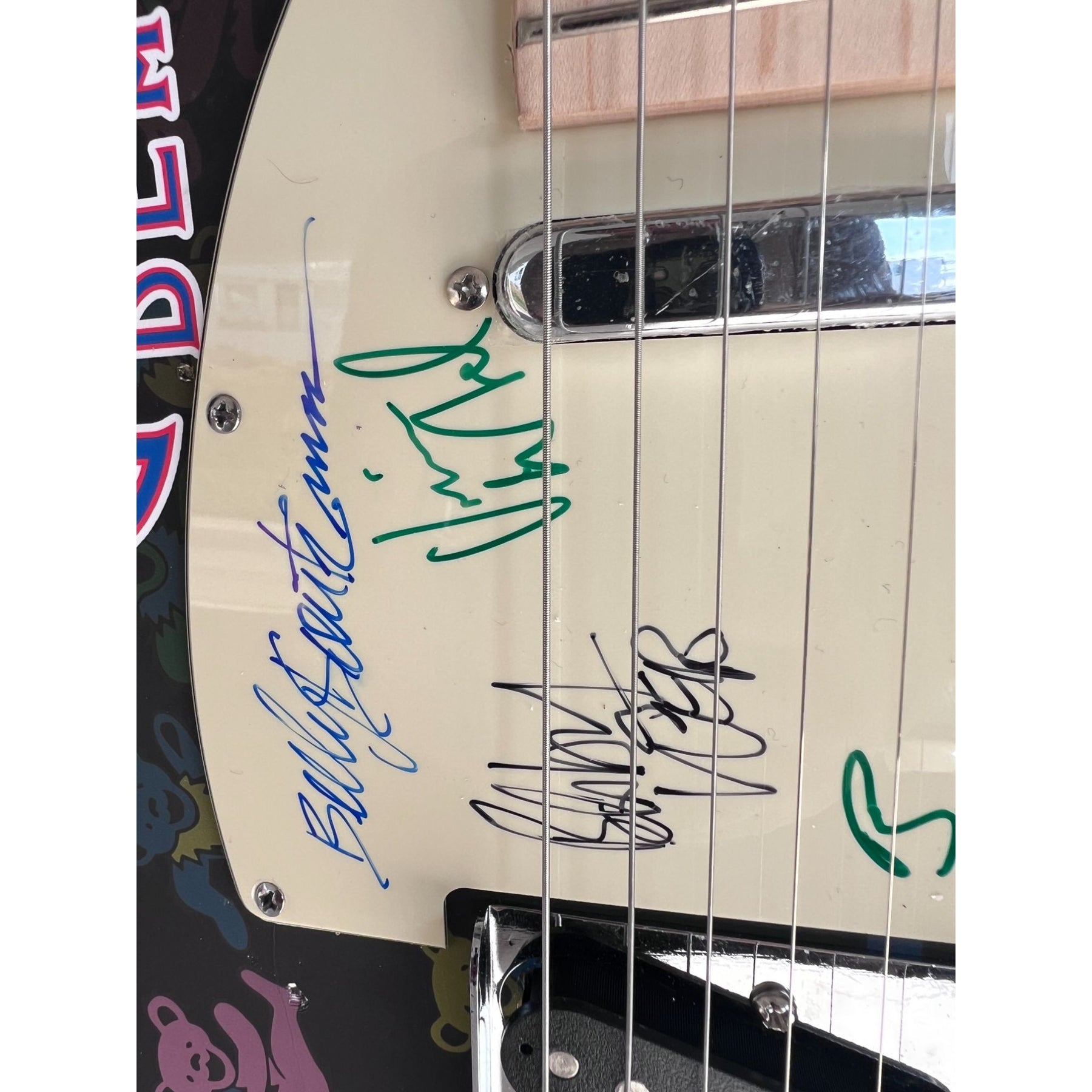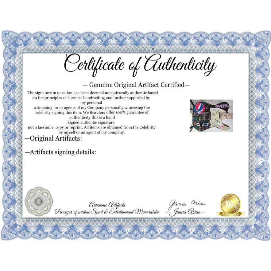 Jerry Garcia, Bob Weir, Phil Lesh, Bill Kreutzmann and Mickey Hart signed in February of 1989, while the band was recording Built to Last at the Marin County Civic Center located in San Rafael, California.