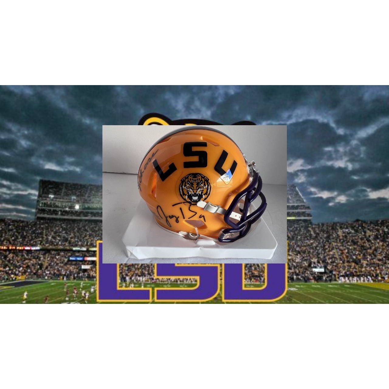 Joe Burrow J'aMarr Chase LSU Tigers Riddell mini helmet signed with proof $799 framed option available