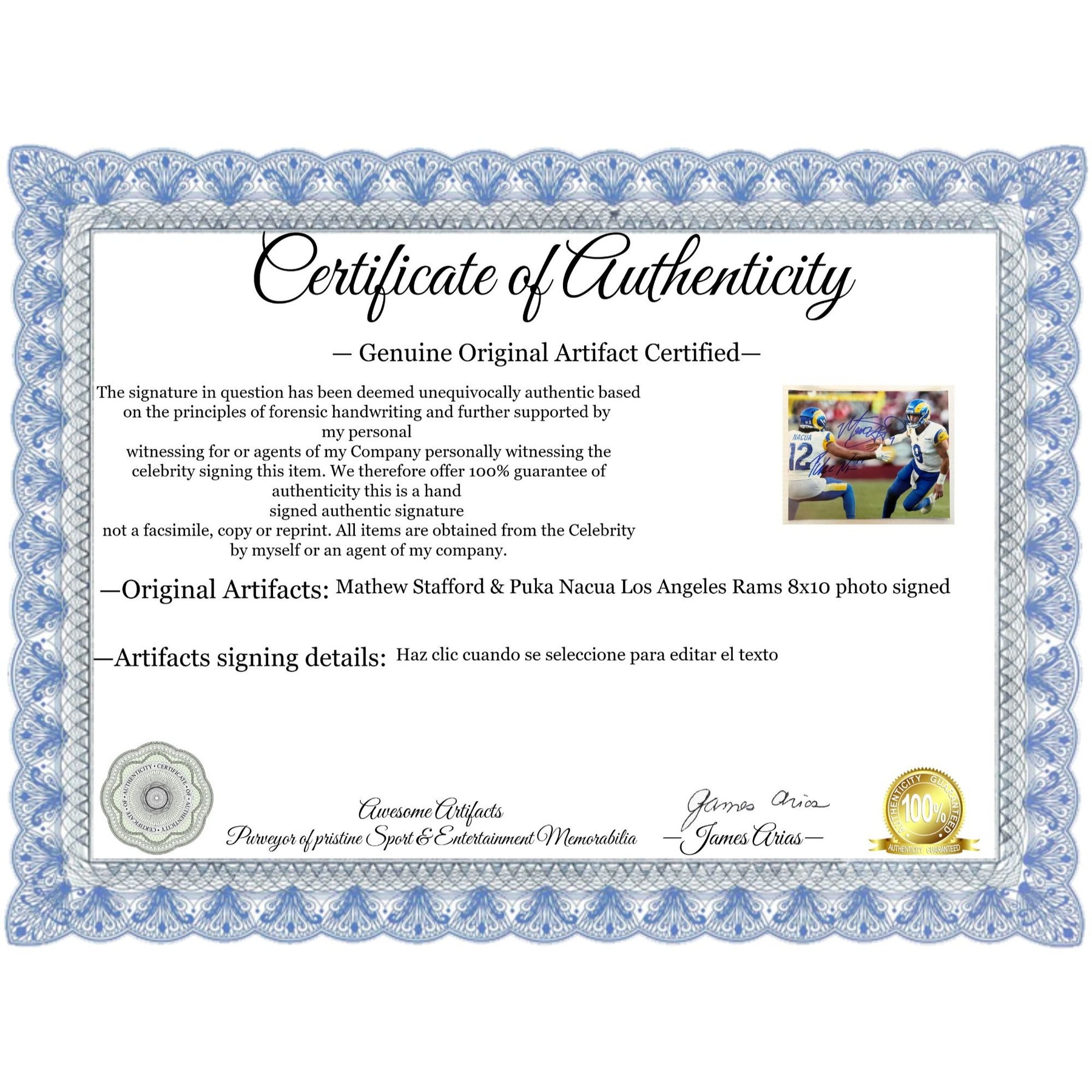 Mathew Stafford & Puka Nacua Los Angeles Rams 8x10 photo signed with proof $495