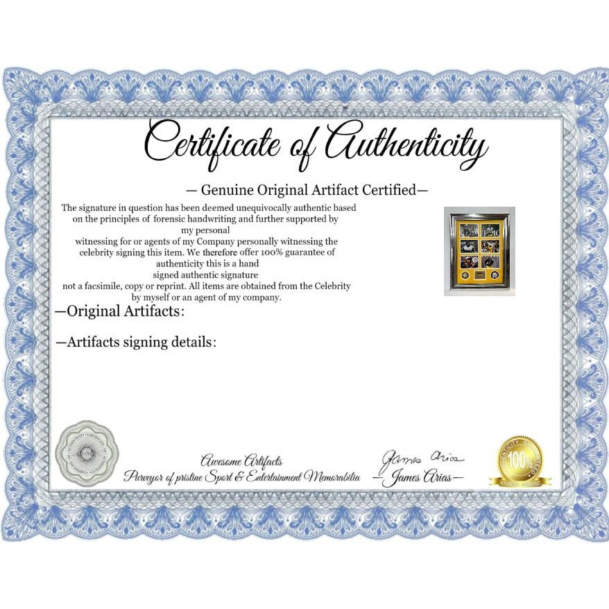 #2 you will receive a certificate of authenticity which will explain the date and location of where I obtained the signatures. Many companies offer an opinion of authenticity I am able to offer 100% guarantee of authenticity as I witness the item being signed personally and I support this claim with signing photos as well as the exact information of where the item was obtained I must say if you take a logical perspective you're getting much more from me than you would get from the so-called authentication companies that give nothing more than an opinion based on no scientific criteria whatsoever by the way