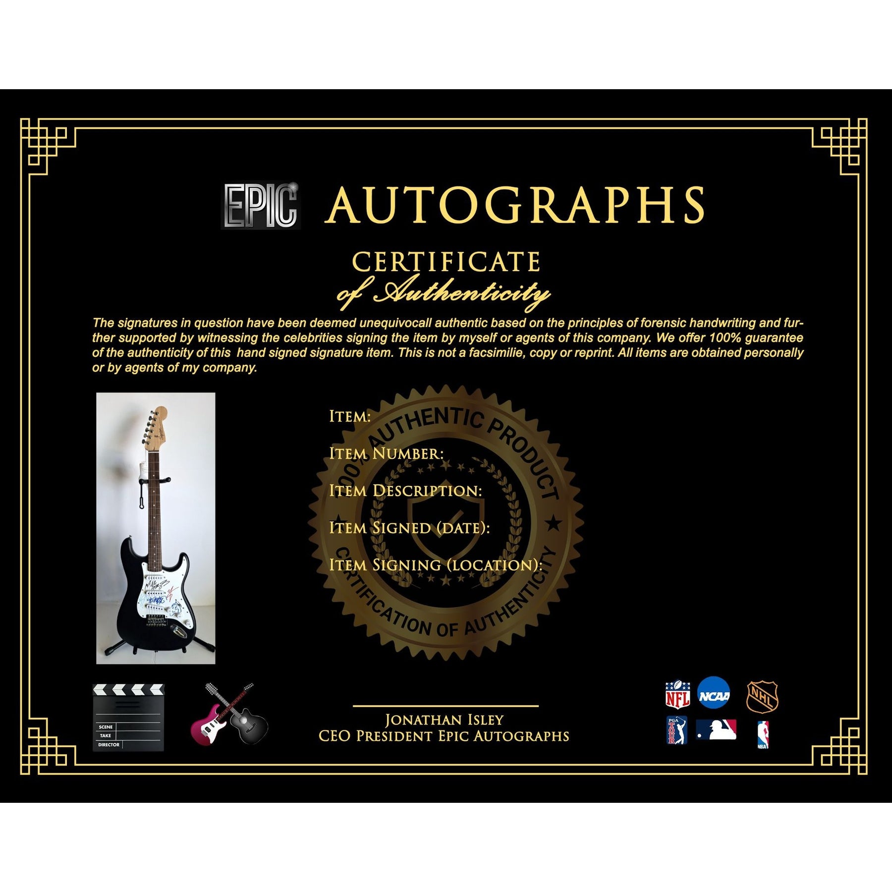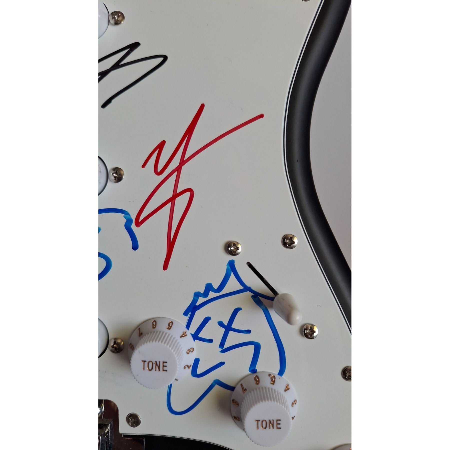 Motley Crue, Tommy Lee, Mick Mars, Nixxi Sixx, Vince Neal, Fender Stratocaster Squier electric guitar signed with proof $3995