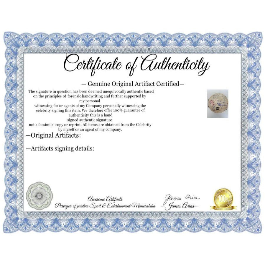 #3 All items which I sell come with a Certificate of Authenticity and with your certificate I will provide specific details, the date and location of where I obtained the signature(s). The nice thing here is I do not offer an opinion of authenticity rather you receive a guarantee of authenticity which I am able to offer as I have witnessed the items which I am offering actually being signed by the sports figure or celebrity.