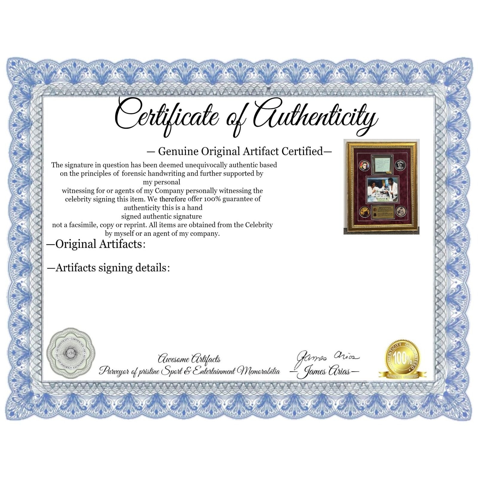 #3 All items which I sell come with a Certificate of Authenticity and with your certificate I will provide specific details, the date and location of where I obtained the signature(s). The nice thing here is I do not offer an opinion of authenticity rather you receive a guarantee of authenticity which I am able to offer as I have witnessed the items which I am offering actually being signed by the sports figure or celebrity.