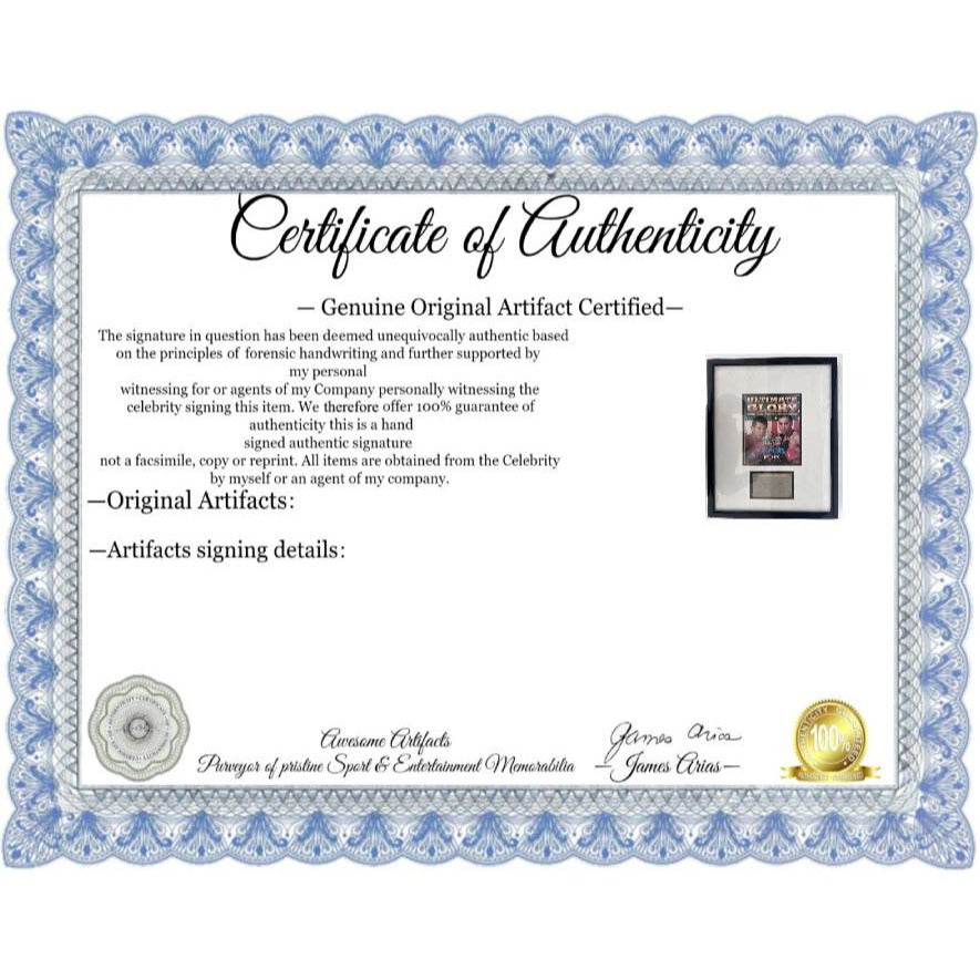 And with your certificate I will provide specific details date and location of where I obtained the signature(s). The nice thing here is I do not offer an opinion of authenticity rather you receive a guarantee of authenticity which I am able to offer as I have witnessed the items which I am offering actually being signed by the sports figure or celebrity.