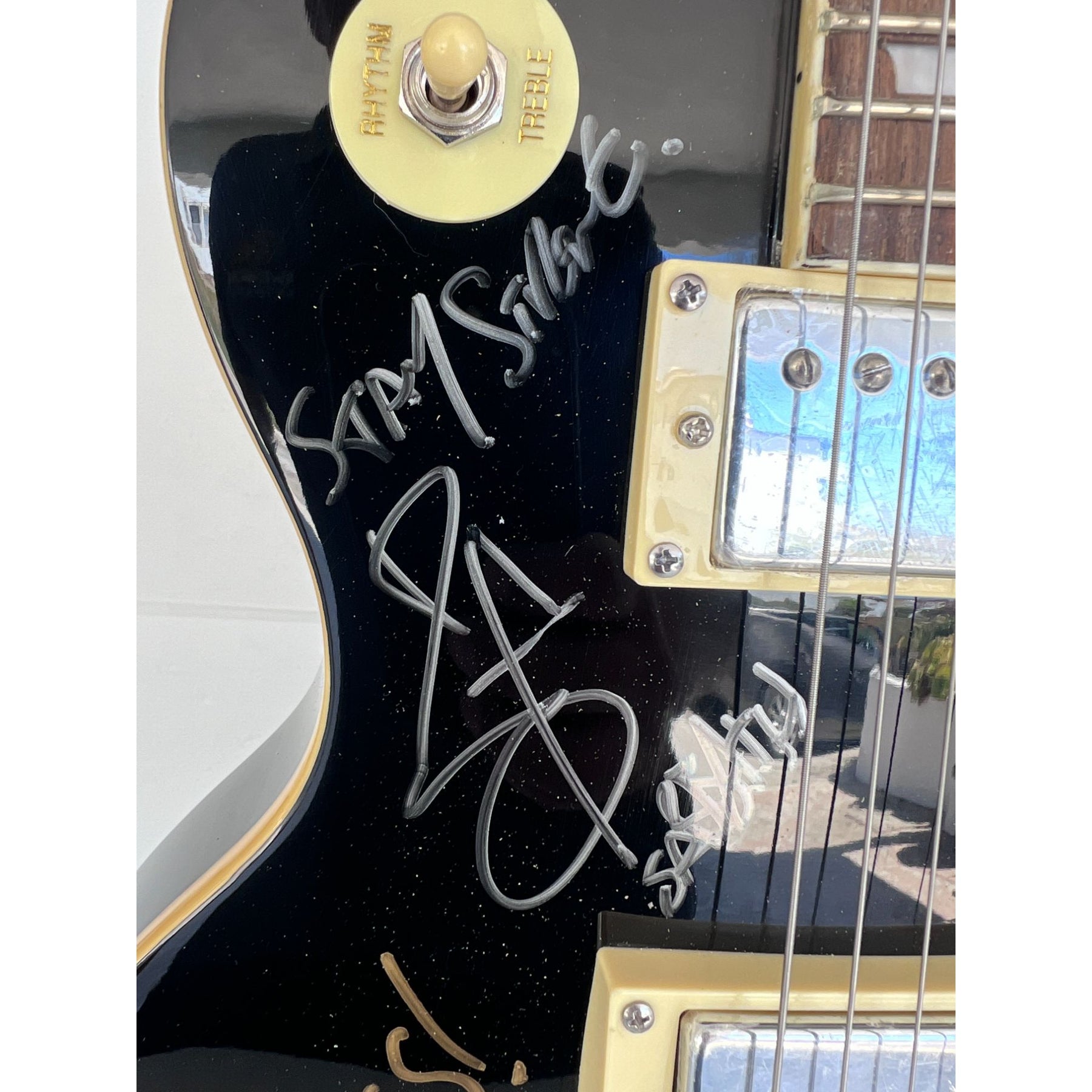 Ozzy Osbourne signed my guitar February 24th, 2000 during 2000 GRAMMY Awards at Staples Center in Los Angeles, California, (out side the arena)