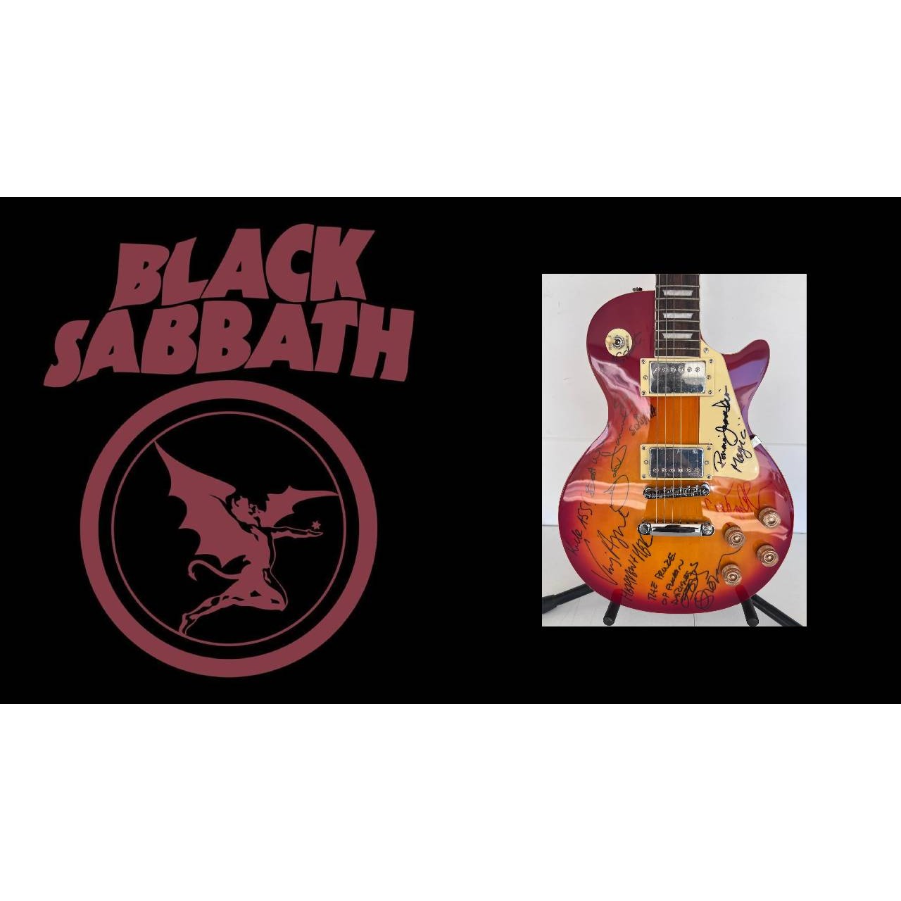 Ozzy Osbourne (with inscription), Ronnie James Dio , Tony Iomi, Geezer Butler, Bill Ward Black Sabath Cherry les paul full size signed with proof $11999