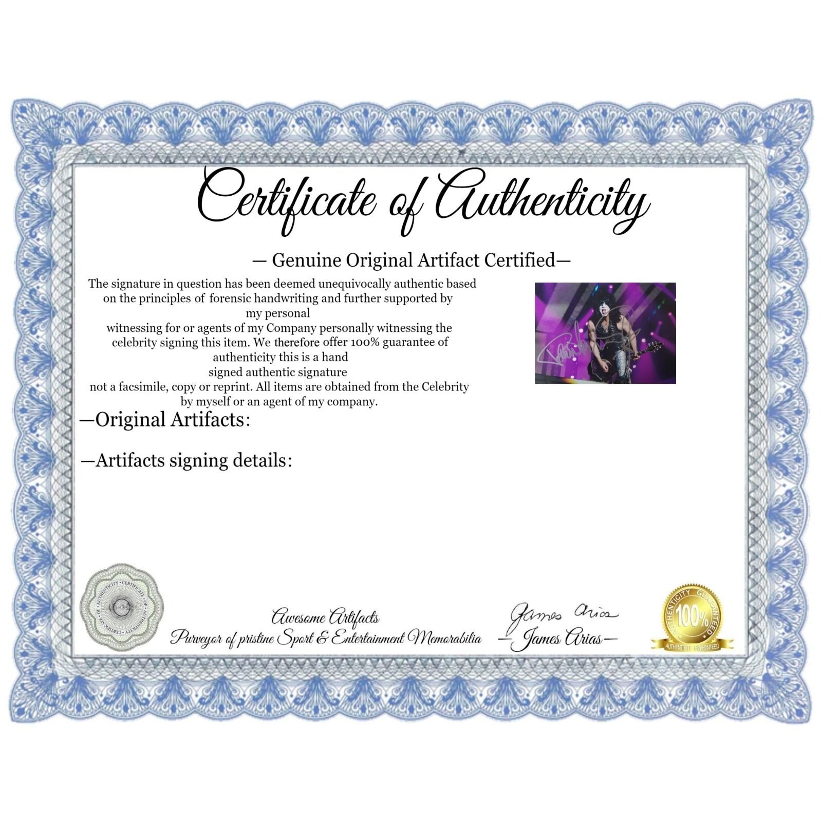 #2 you will receive a certificate of authenticity which will explain the date and location of where I obtained the signatures. Many companies offer an opinion of authenticity I am able to offer 100% guarantee of authenticity as I witness the item being signed personally and I support this claim with signing photos as well as the exact information of where the item was obtained I must say if you take a logical perspective you're getting much more from me than you would get from the so-called authentication companies that give nothing more than an opinion based on no scientific criteria whatsoever by the way