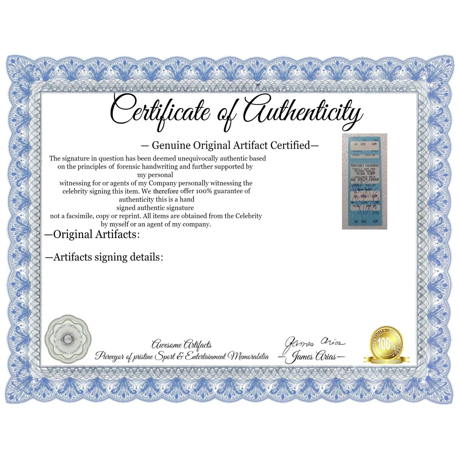 I can go on and on but I think you get the point I had a 40 plus year adrenaline ride of meeting and getting signatures of the music industries greatest artists and now it is my pleasure to offer these incredible items from my personal collection to the public.