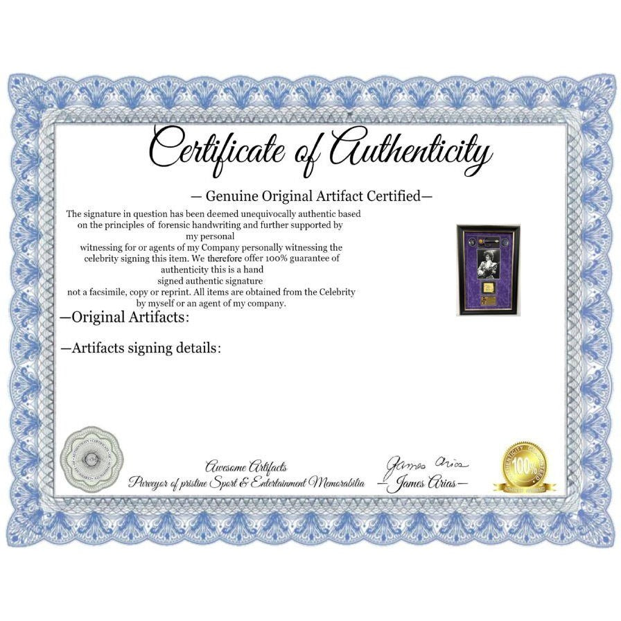 #3 All items which I sell come with a Certificate of Authenticity and with your certificate I will provide specific details, the date and location of where I obtained the signature(s). The nice thing here is I do not offer an opinion of authenticity rather you receive a guarantee of authenticity which I am able to offer as I have witnessed the items which I am offering actually being signed by the sports figure or celebrity.
