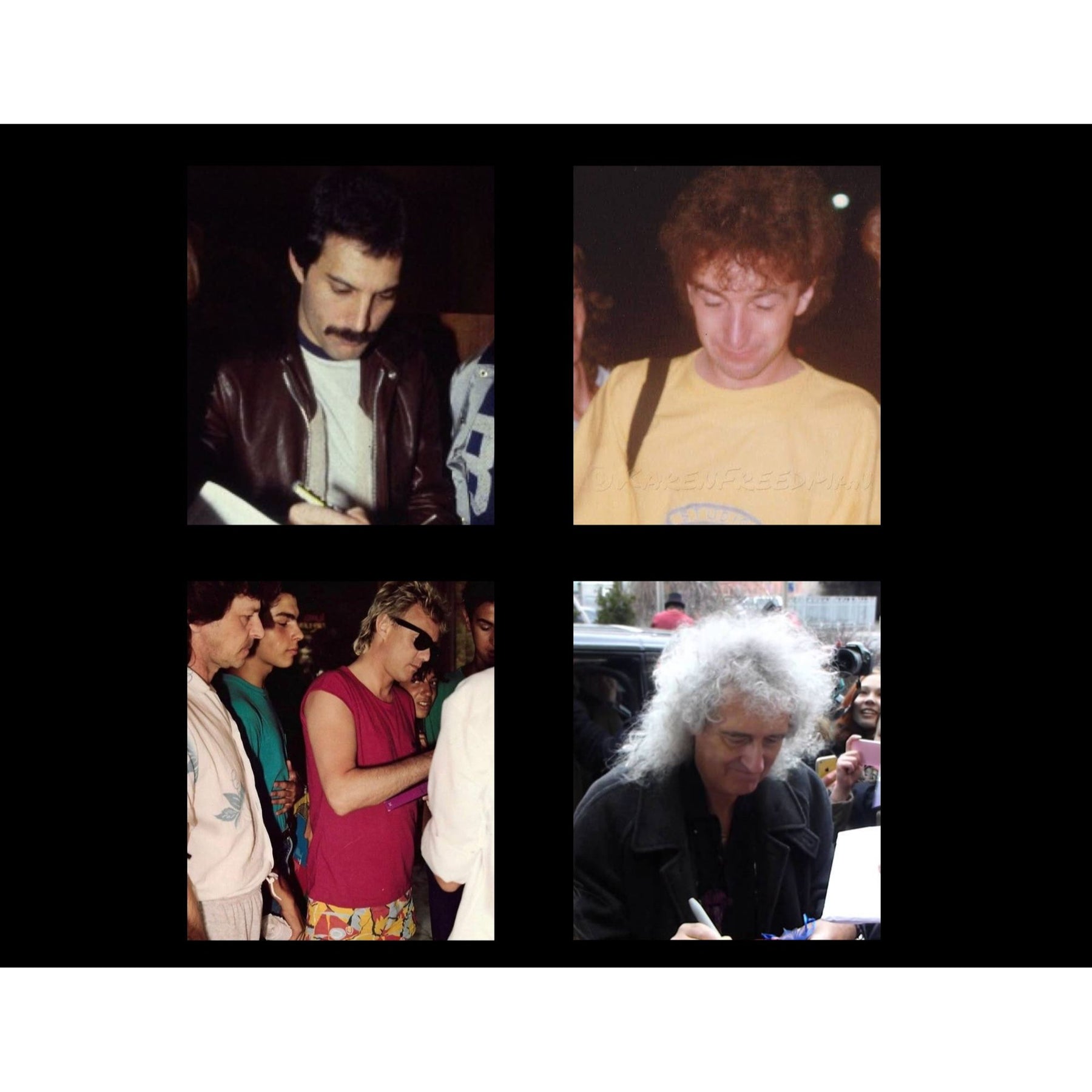 Freddie Mercury signed outside of Record Plant Studio in Los Angeles CA. On July 12th of 1983, where he was recording "The Work's" album. Freddie signed the pickguard without the guitar and I later got the pickguard assembled with this les paul signed by the additonal members of the band