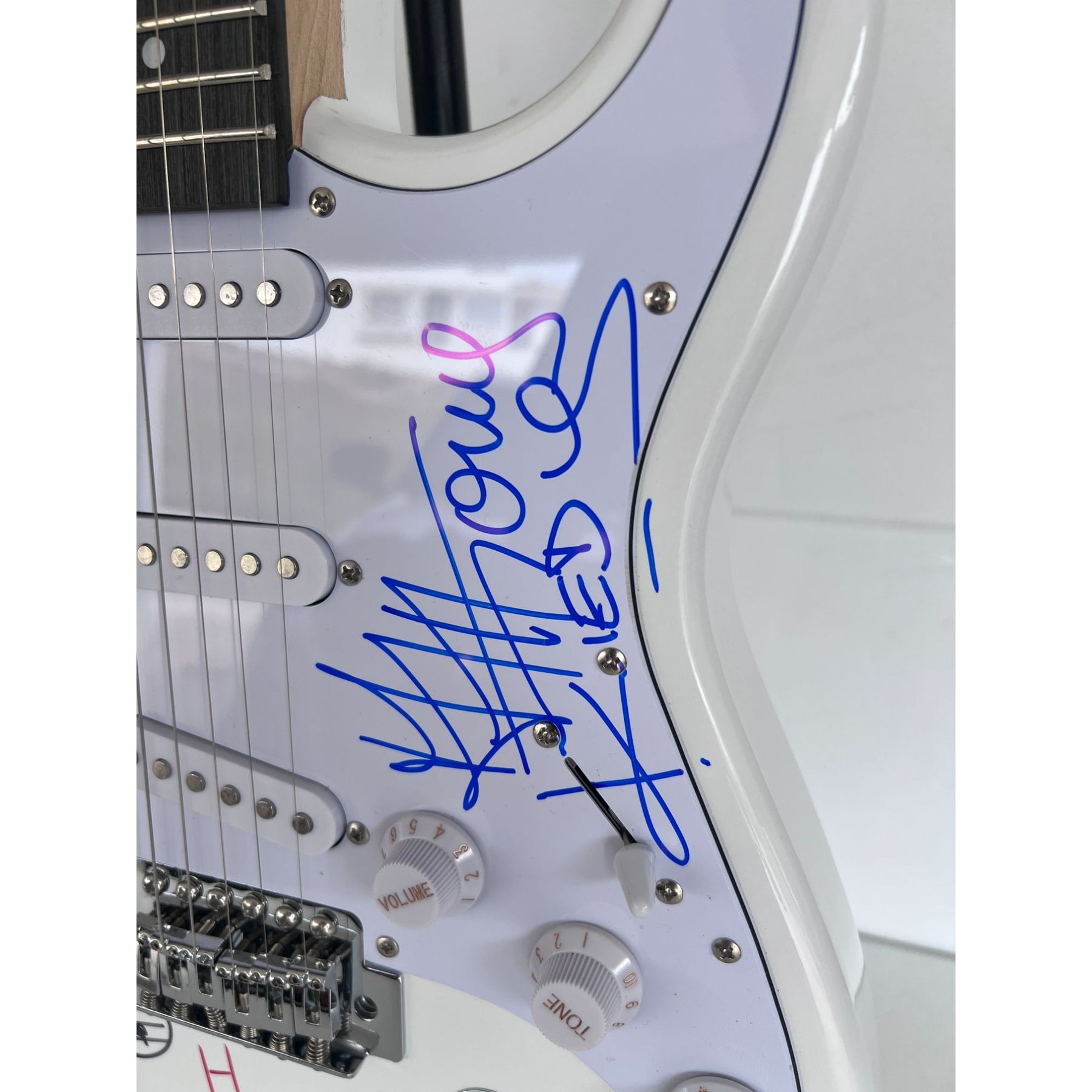 Red Hot Chili Peppers Anthony Kiedis Chad Smith Flea full size electric guitar signed and inscribed with proof