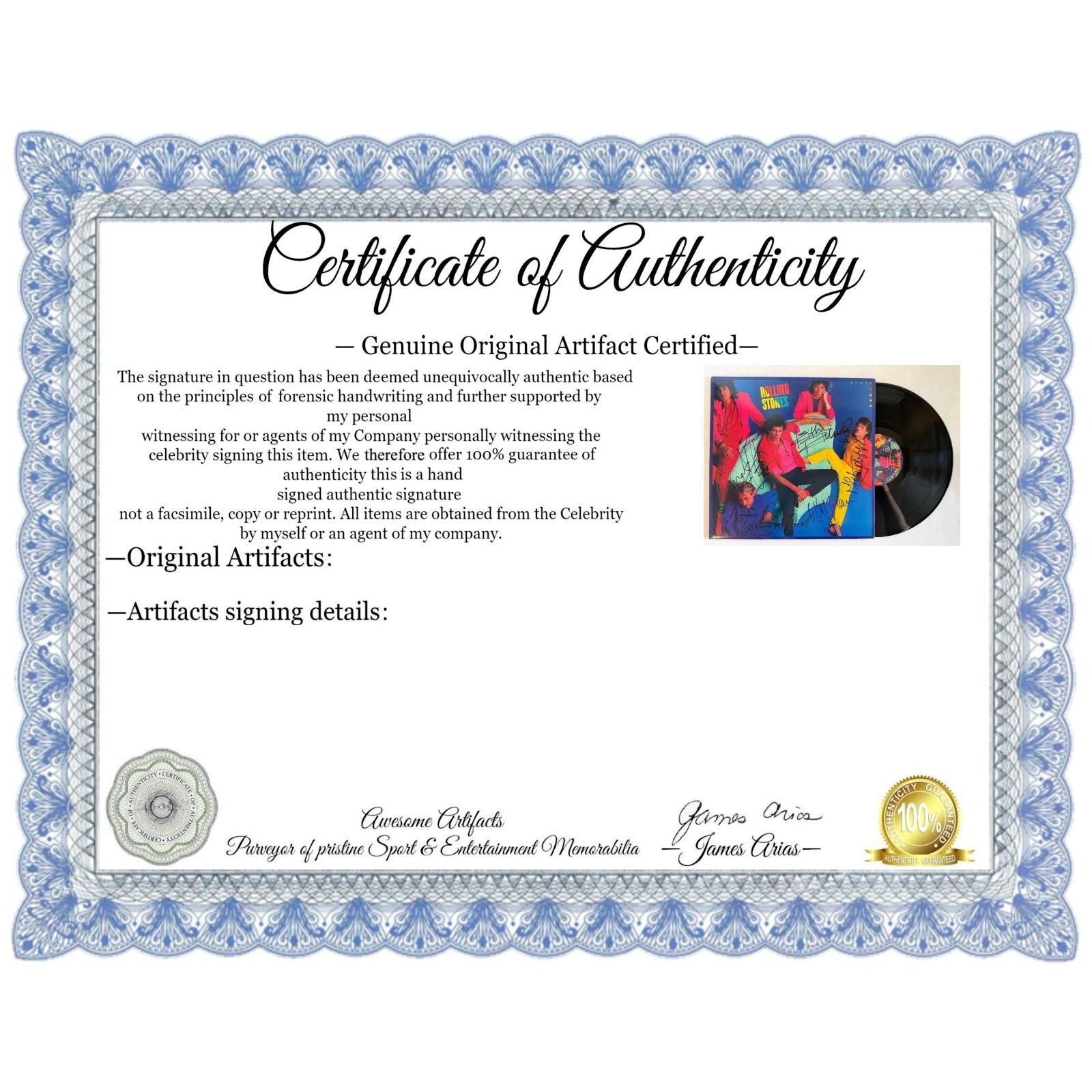 I can go on and on but I think you get the point I had a 40 plus year adrenaline ride of meeting and getting signatures of the music industries greatest artists and now it is my pleasure to offer these incredible items from my personal collection to the public.