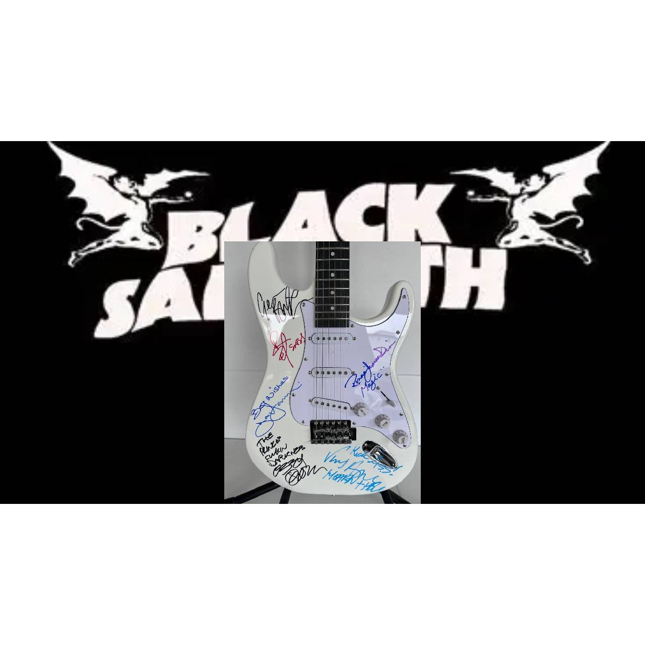 Randy Rhoads, Ronnie James Dio, Ozzy Osbourne, Tony Iommi ,Bill Ward, Geezer Butler, Black Sabbath ,electric guitar signed with proof $4995