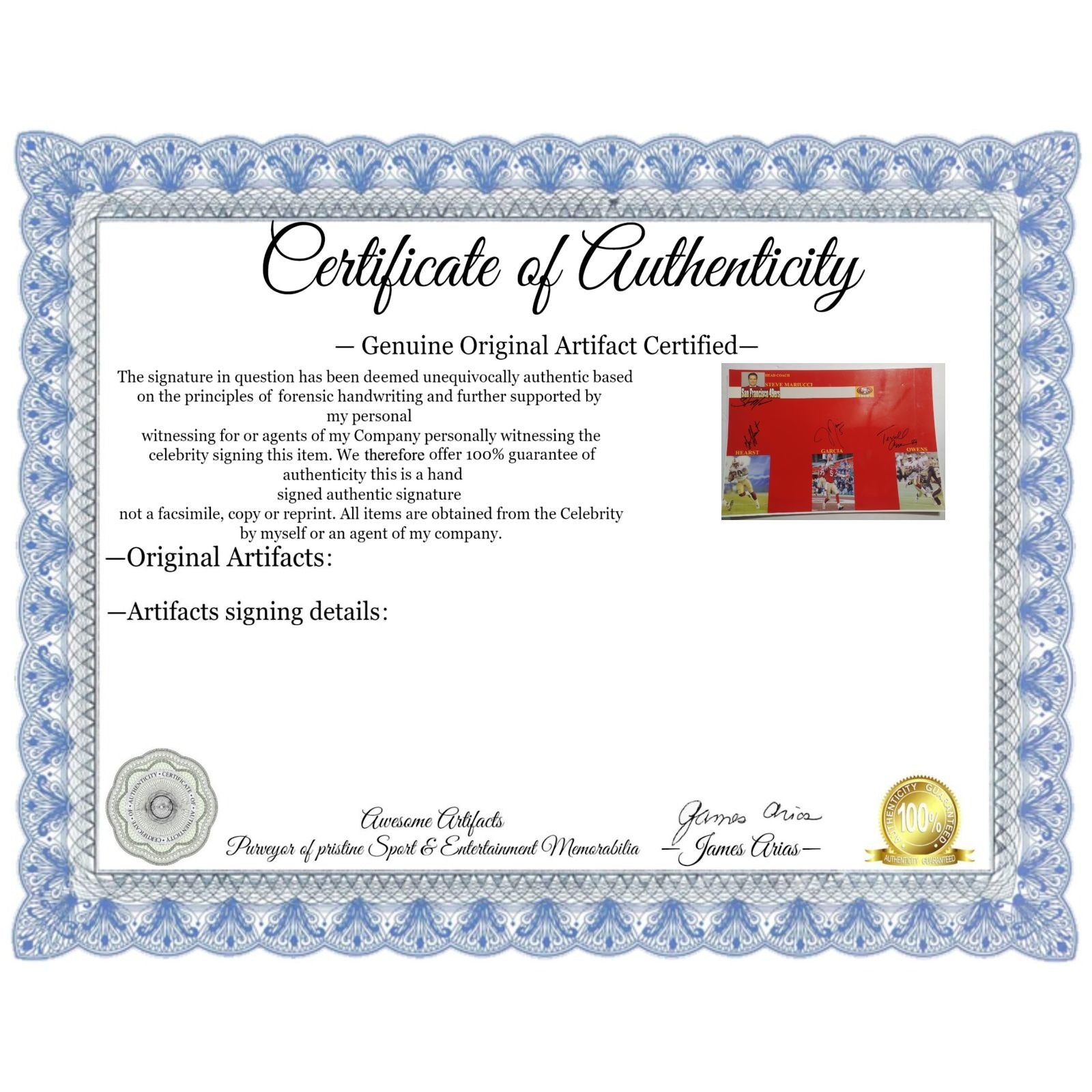 #2 you will receive a certificate of authenticity which will explain the date and location of where I obtained the signatures. Many companies offer an opinion of authenticity I am able to offer 100% guarantee of authenticity as I witness the item being signed personally and I support this claim with signing photos as well as the exact information of where the item was obtained I must say if you take a logical perspective you're getting much more from me than you would get from the so-called authentication companies that give nothing more than an opinion based on no scientific criteria whatsoever by the way