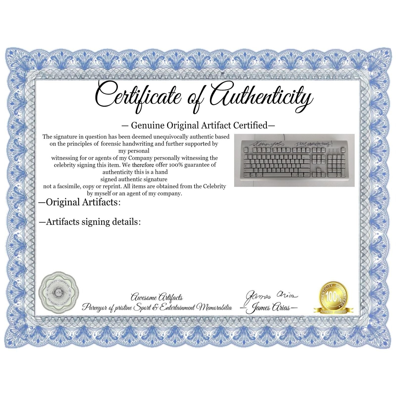 Steve Jobs, "I love manufacturing", signed, with, inscription, vintage, Apple, Keyboard signed with proof $4999