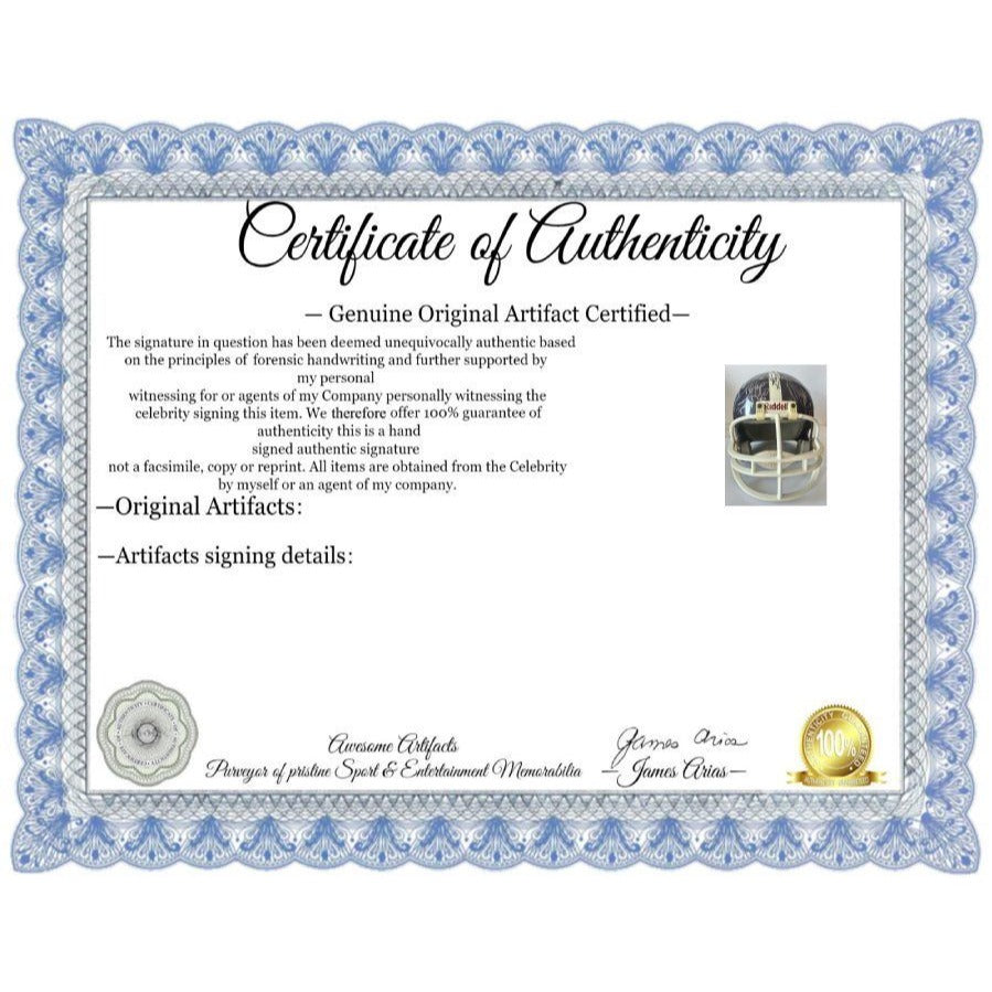 And with your certificate I will provide specific details date and location of where I obtained the signature(s). The nice thing here is I do not offer an opinion of authenticity rather you receive a guarantee of authenticity which I am able to offer as I have witnessed the items which I am offering actually being signed by the sports figure or celebrity.
