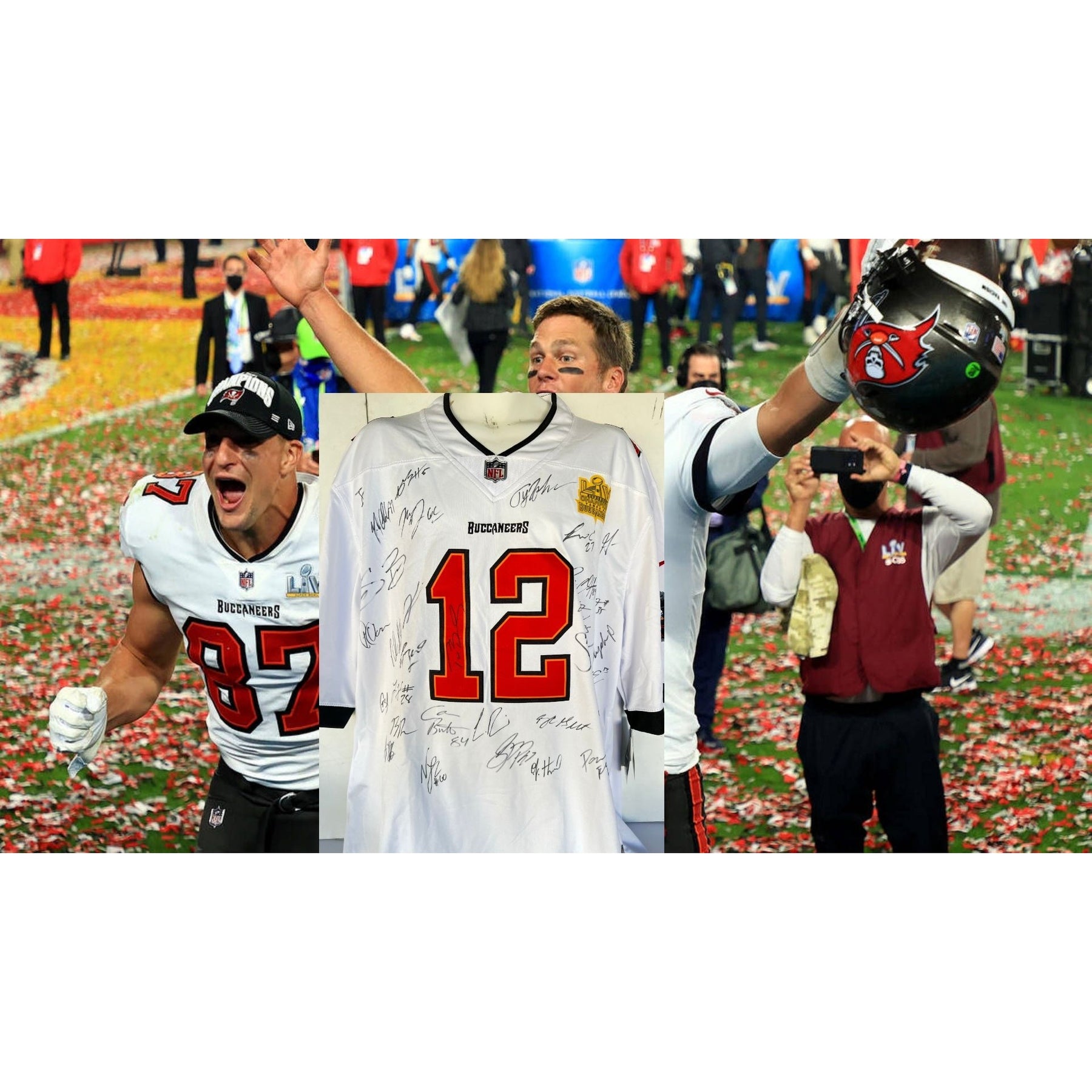 Tampa Bay Buccaneers Tom Brady, Rob Gronkowski, Bruce Arians, 2020-21 Super Bowl LIX champs team signed XXL jersey with proof $4995