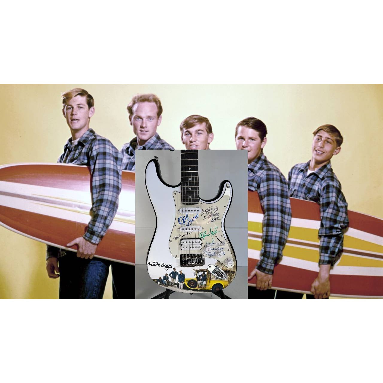The Beach Boys full size Stratocaster one of a kind electric guitar Brian Wilson, Mike Love, Al Jardine, David Marks (with lyrics)