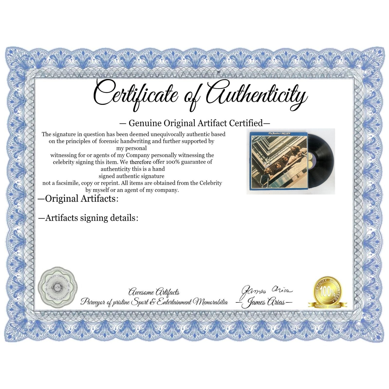 The Beatles, "1967-70" original LP signed by John Lennon, George Harrison, Paul McCartney, and Ringo Starr with proof $9995