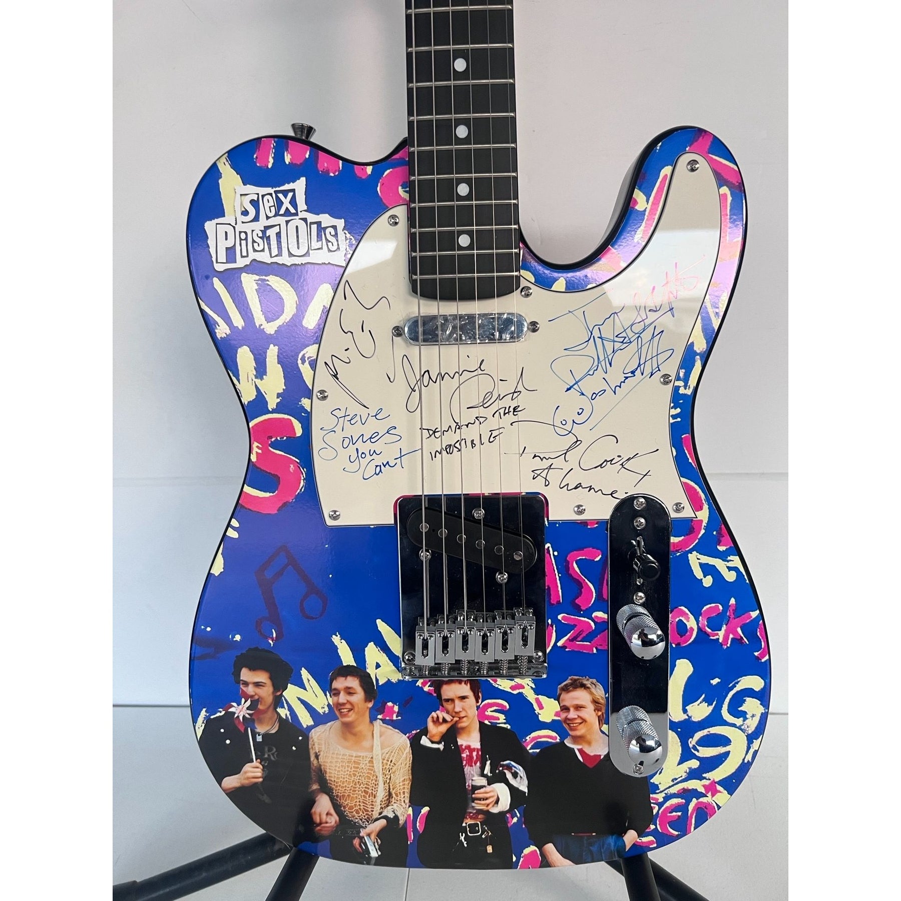 The Sex Pistols John Lyndon "Johnny Rotten", Glen Matlock, Paul Cook, Steve Jones one of a kind telecaster electric guitar signed with proof