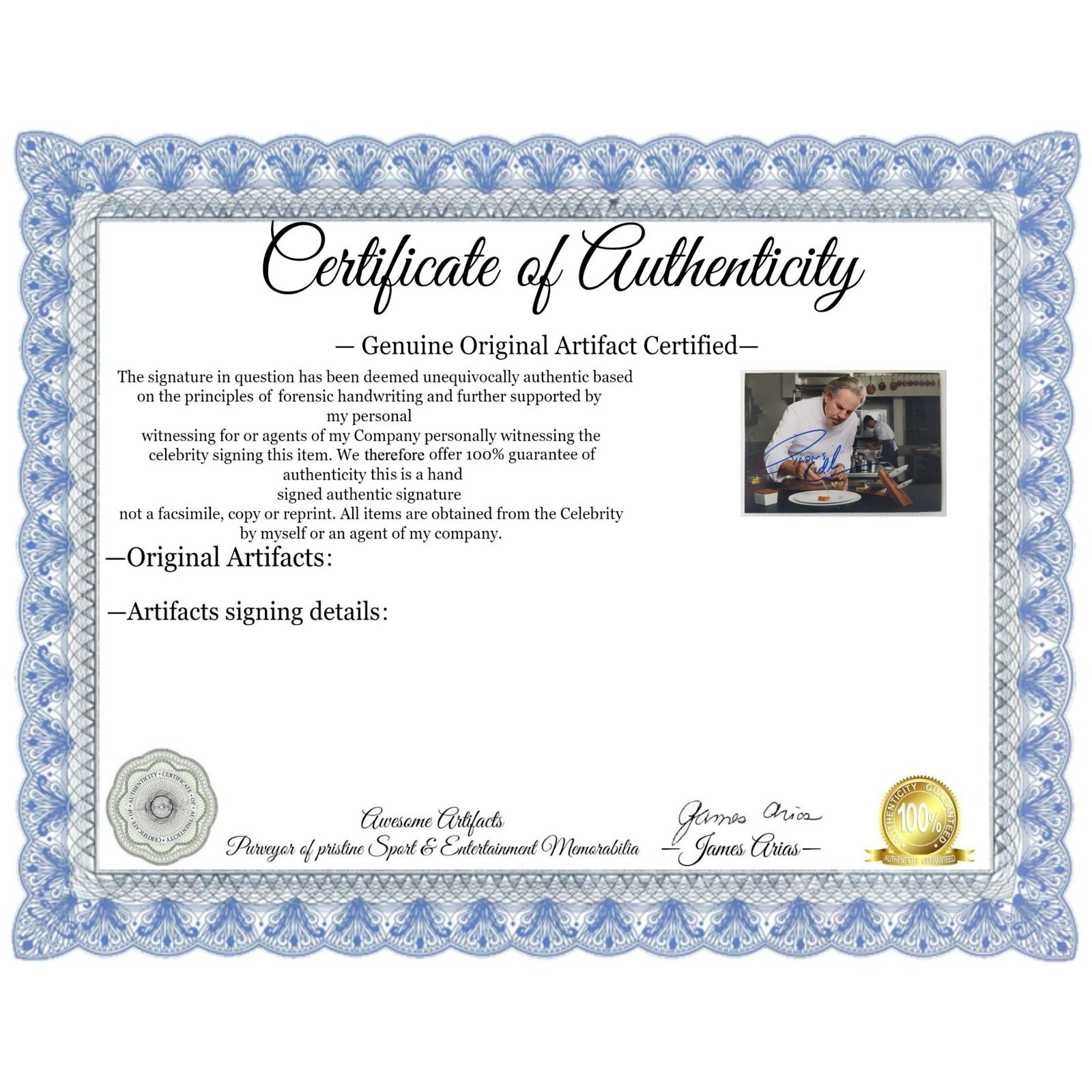 What I would like to express to my customers and my future customers is that I always put the customer first and I can assure you that when dealing with Awesome Artifacts you will receive excellent customer service and genuine products which are supported by factual signing information as well as photos of the celebrity signing.