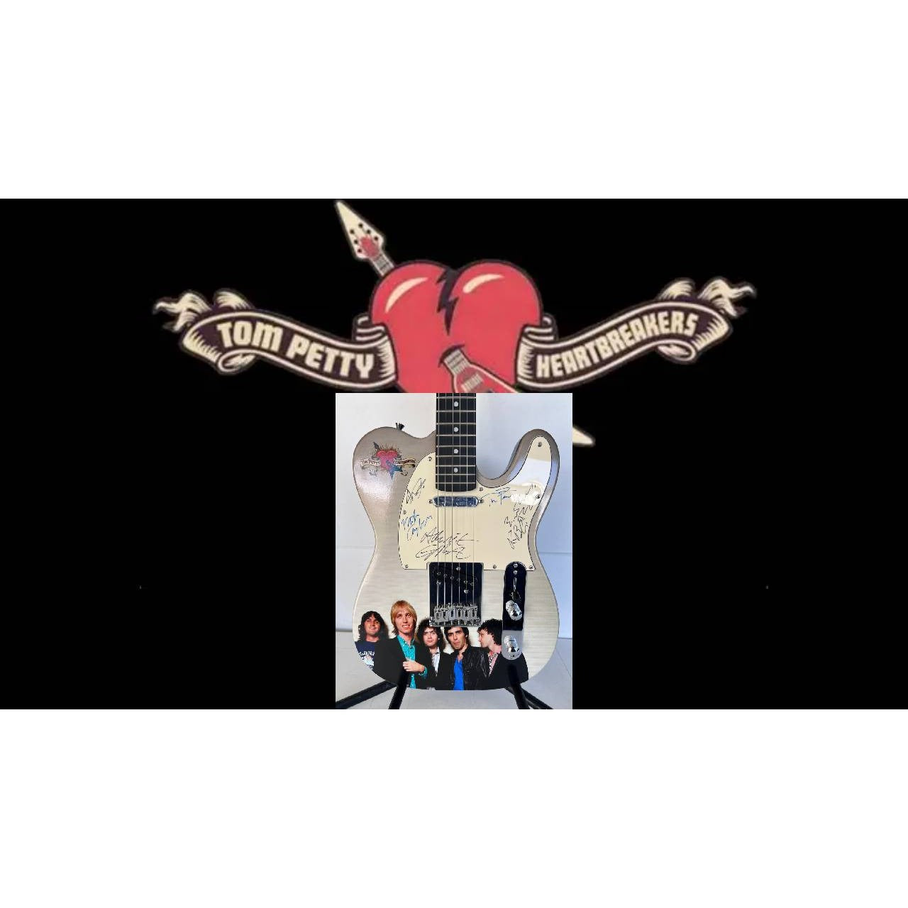 Tom Petty (with sketch) and The Heartbreakers, Ron Blair, Benmont Tench, Scott Thurston, and Mike Campbell full size electric guitar signed with proof $5999