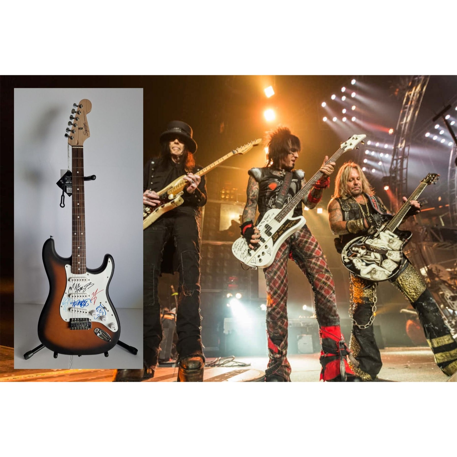 Tommy Lee, Mick Mars, Nixxi Sixx, Vince Neal, Motley Crue, Fender Stratocaster Squier electric guitar signed with proof $3995