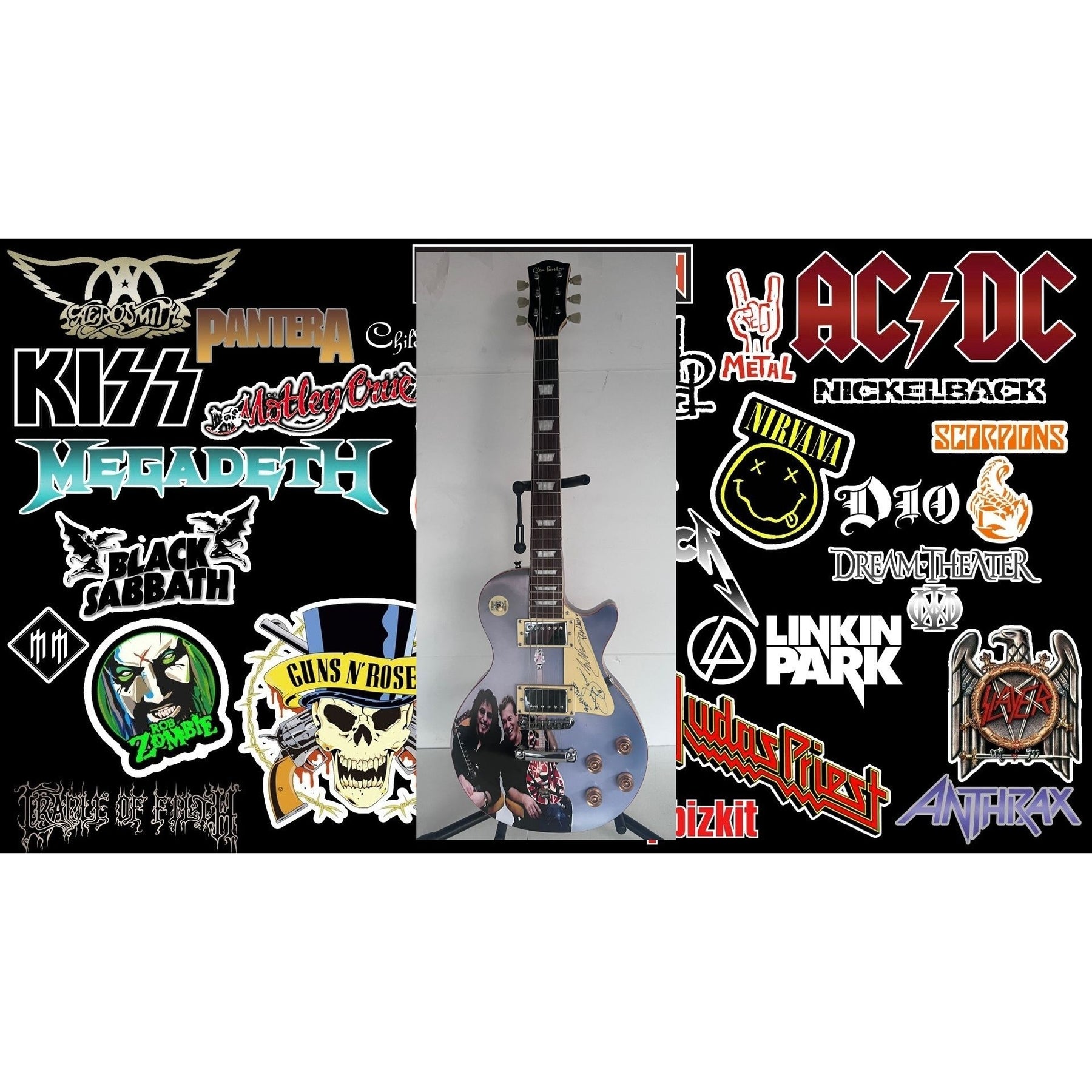 Tony Iommi (Black Sabbath) Eddie Van Halen two of Rock N' Rolls greatest guitarists one of a kind les paul signed with proof.