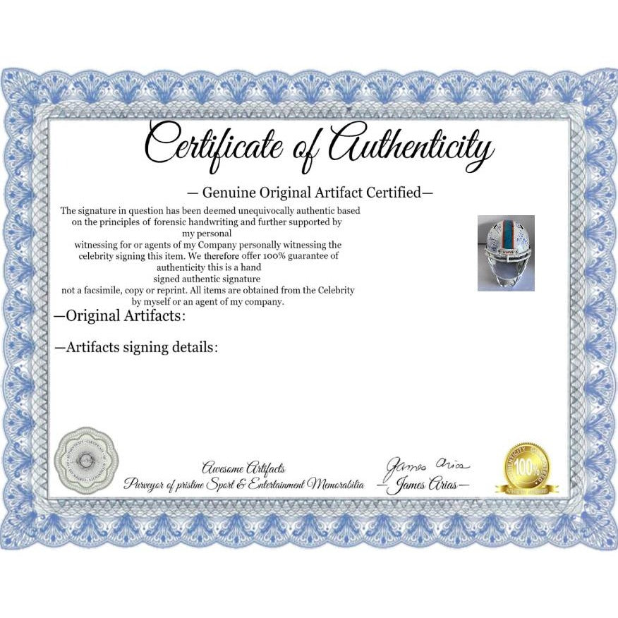 #3 All items which I sell come with a Certificate of Authenticity and with your certificate I will provide specific details, the date and location of where I obtained the signature(s). The nice thing here is I do not offer an opinion of authenticity rather you receive a guarantee of authenticity which I am able to offer as I have witnessed the items which I am offering actually being signed by the sports figure or celebrity.